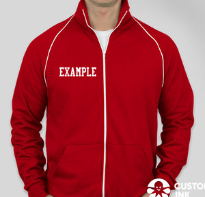 Shown on the American Apparel USA-Made Fleece Track Jacket with White Piping in Red / White