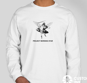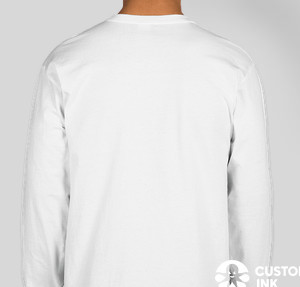 Shown on the Gildan Ultra Cotton Long Sleeve T-shirt in White Try it on more styles and colors