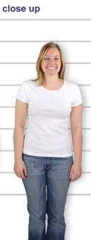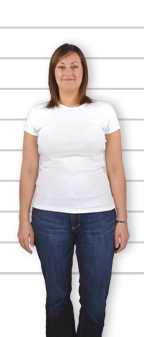 Measure under arms around fullest part of bust. Be sure to keep tape level across back and comfortably loose.