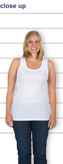 Measure under arms around fullest part of bust. Be sure to keep tape level across back and comfortably loose.