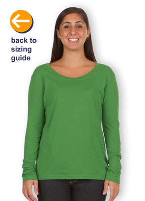 Anvil Women's Lightweight Scoop Neck Long Sleeve T-shirt - Sizing Line-UpSM - Medium