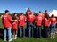 "Students from the Chinook Running Club, in Fairbanks, Alaska, prepare for the start of their event by building a team pyramid. It's a very colorful one too!