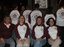 "Here's a better picture of us showing off the front of our shirts. Our mini-reunion was a blast and the CustomInk shirts were a big hit. I used CustomInk for our all stars spirit shirts this summer and used them again for these shirts. After voting on this shirt instead of the sweatshirt, my gang all wished for the sweatshirts because Florida dropped to the mid 30's that night. It was cold! At this resturaunt, we were able to show off our school colors."