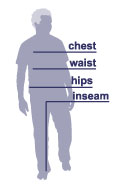Measure under arms around fullest part of bust. Be sure to keep tape level across back and comfortably loose.