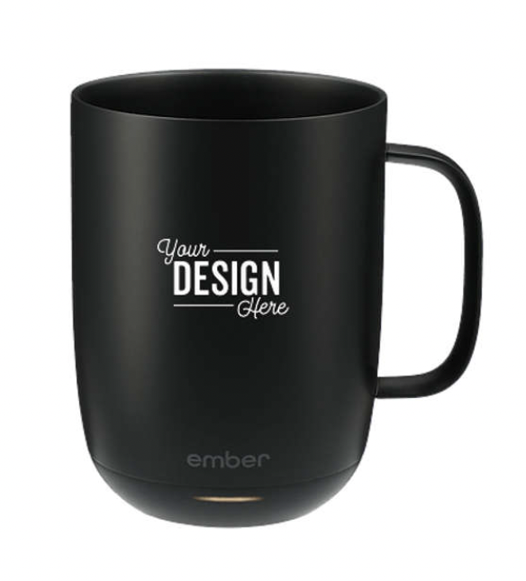 Simple yet sleek and practical, custom water bottles branded with your logo and tumblers are always a hit! Arctic Zone drinkware features Thermal HP® double-wall vacuum construction to keep drinks hot for up to 12 hours and cold for up to 48 hours (!). MiiR drinkware boasts Thermo 3D ™ double wall vacuum insulation technology and MiiR gives at least 1% of revenue to nonprofit organizations whose work empowers communities while benefiting the health of their natural environments. Both of these collections feature custom laser engraving, which elevates the look of any custom logo design. Mugs with a custom logo are trendy picks for new employee welcome gifts, but wouldn’t you like to make a custom mug a little more special? Enter the Ember Laser Engraved 14 oz. Stainless Steel Temperature Control Mug. These custom mugs make any logo look sleek and elevated with custom laser engraving and a classic black aesthetic. Plus, it doesn’t just keep liquids hot: this mug keeps liquids at a steady temperature to ensure a perfect sip every time. -