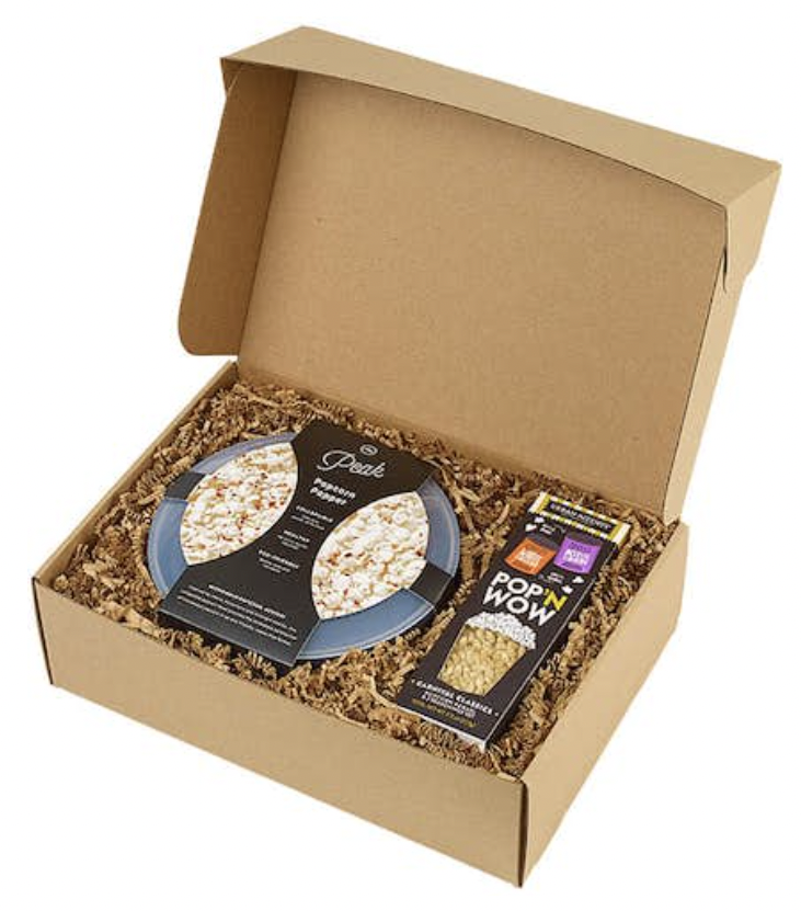 customize the gift bag that holds eight chewy, gooey, crave-worthy Milk Bar Cookies. See if you can decide between two scrumptious options: Compost Cookies contain pretzels, potato chips, coffee, chocolate chips, and butterscotch chips; or a fun spin on an old classic, Cornflake Chocolate Chip Marshmallow Cookies. Or just get both! If you’d rather get a salty snack, check out the What’s Pop’N Gourmet Popcorn Gift Set, which comes with its own food-safe silicone bowl and two seasoning shakers. -