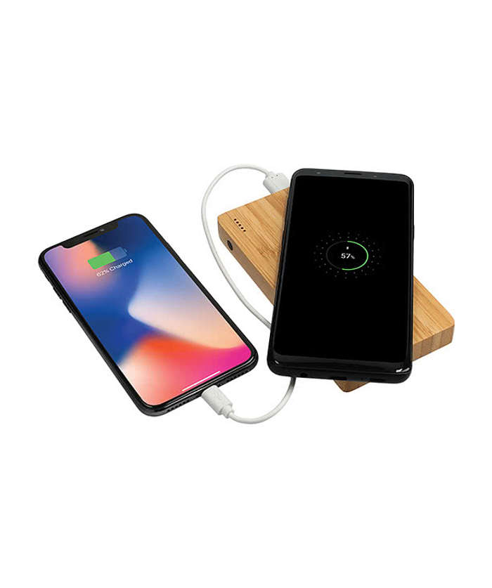 - Material: Bamboo exterior; 5,000 mAh lithium battery; dual USB-A output ports