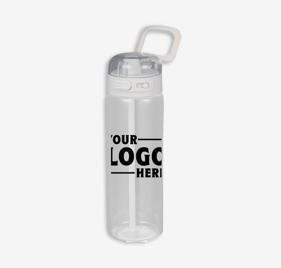 - Material: 100% recycled RPET plastic; 27 oz. capacity; screw-on lid with button-locked flip-top spout