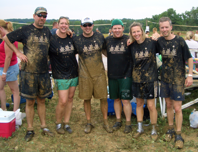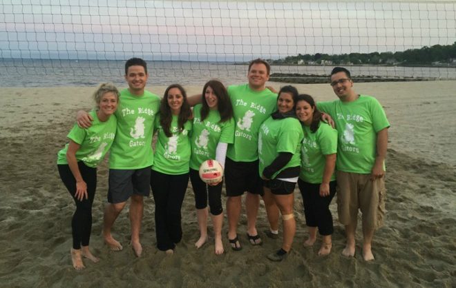 “Our sand volleyball team name is One Hit Wonders because we don’t bump and set, we just hit it back over. On the back of each shirt is an actual “one hit wonder” song that applies to each personality. The man on the far left is our father. He comes and watches every game and is our good luck charm, so we felt it was appropriate to get him a shirt as well!!!”