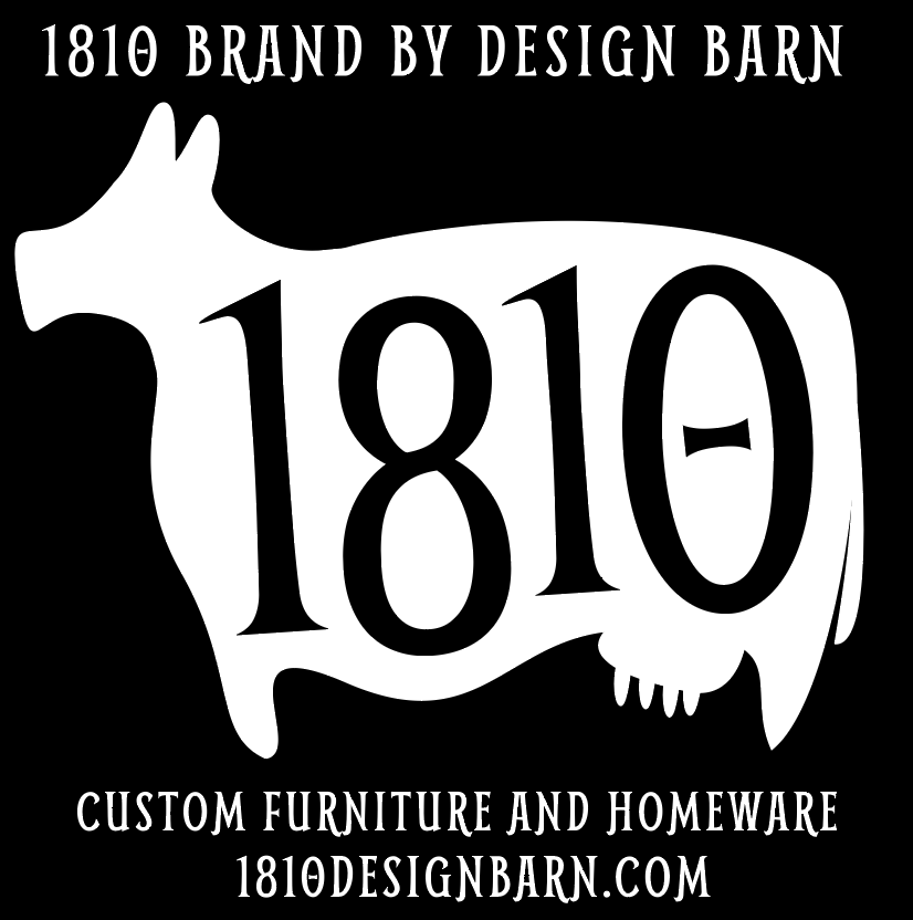 With his background in marketing, it was no surprise that creating a brand for the business was one of the first things Eddie worked on. Taking the name from his home and workshop, 1810 Design Barn’s main logo featured a cow silhouette with the date ‘1810’ on it instead of spots. “The original barn to our house was across the street from the house and housed one single dairy cow. Local historians say that every day the owner, Willie Richards, would walk across the street with his bucket and milk that one cow. I felt it was very fitting to use that cow as our maker’s mark to honor the family and animals that were here long ago,” explained Eddie.
