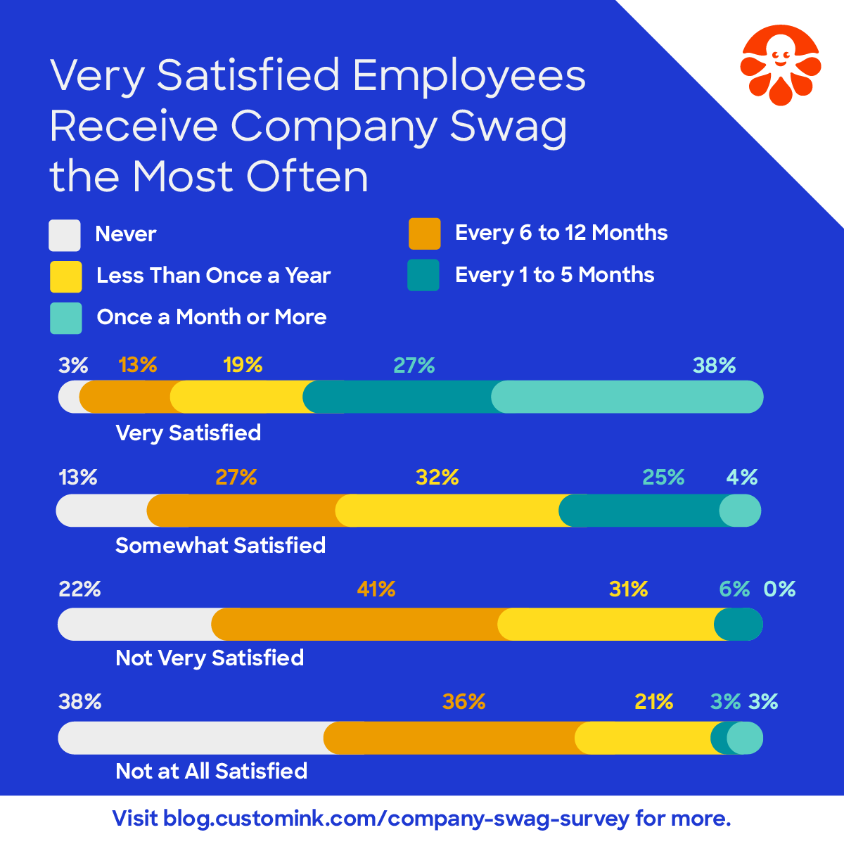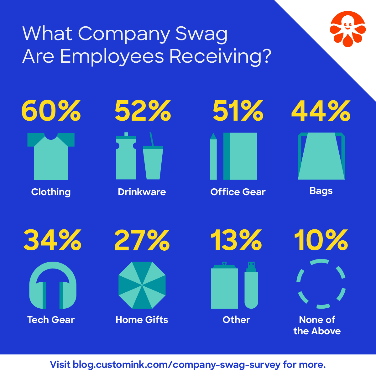 - More than two-thirds of employees (70%) say they receive swag from their employer at least once a year, with one in five (22%) saying they get such items from their employer every month.