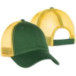 If you like a foam style, the Valucap Foam/Mesh Trucker Hat is perfect for groups and has a pre-curved visor with braid detailing. Or for a pop of color, the Mega Cap Contrast Stitch Trucker Hat has fresh colors that stand out. It also has really cool contrasting under the visor and a velcro closure. Looking for something for your school or event? The Sportsman Dirty‑Washed Trucker Hat has a distressed, unstructured look that’s on trend with a brass buckle closure. If you love top brands, the Carhartt Rugged Professional Trucker Hat has stretch technology and a sweat-fighting band–talk about keeping it cool!