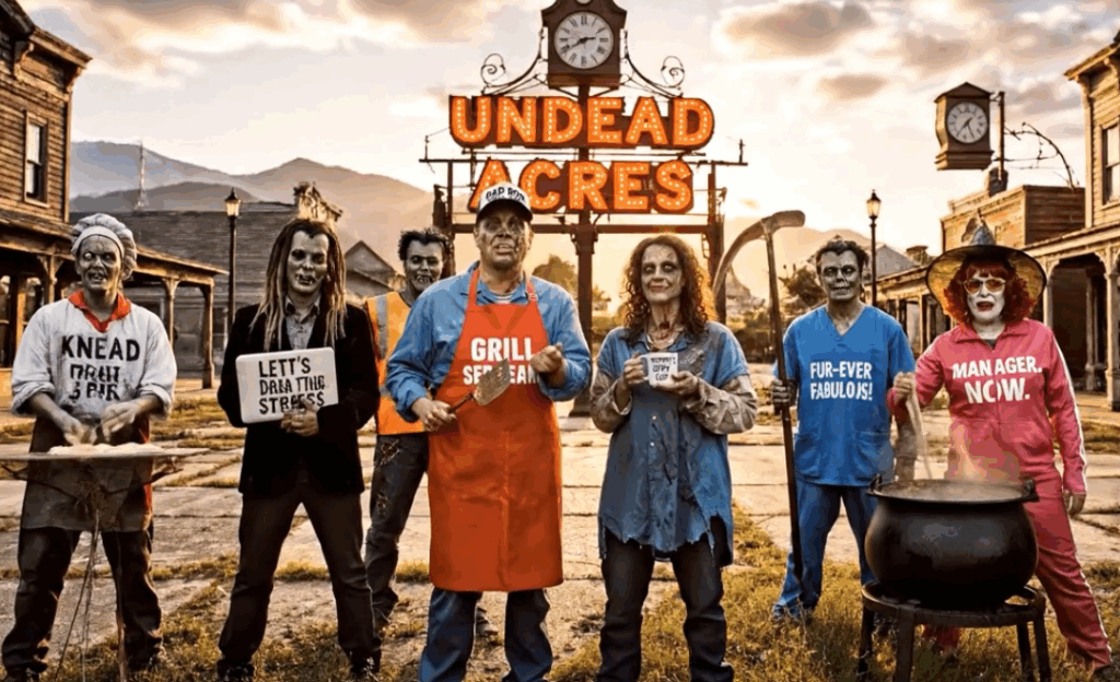 They say inspiration can come from anywhere and this Halloween season, let’s listen in on how the residents of Undead Acres build community and small business bonds! They count on us to bring their ideas to (un)life at Halloween as they dress as their favorite humans. And we help their local businesses show that undead doesn’t mean lifeless in their matching punniest custom swag.