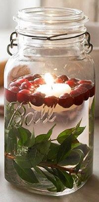 Everyone’s favorite all-purpose storage and decoration solution is definitely not left out of the winter holiday festivities. A little bit of twine, some paint, water, and a candle can transform a plain mason jar into a beautiful, inexpensive, yet eye-catching table feature.