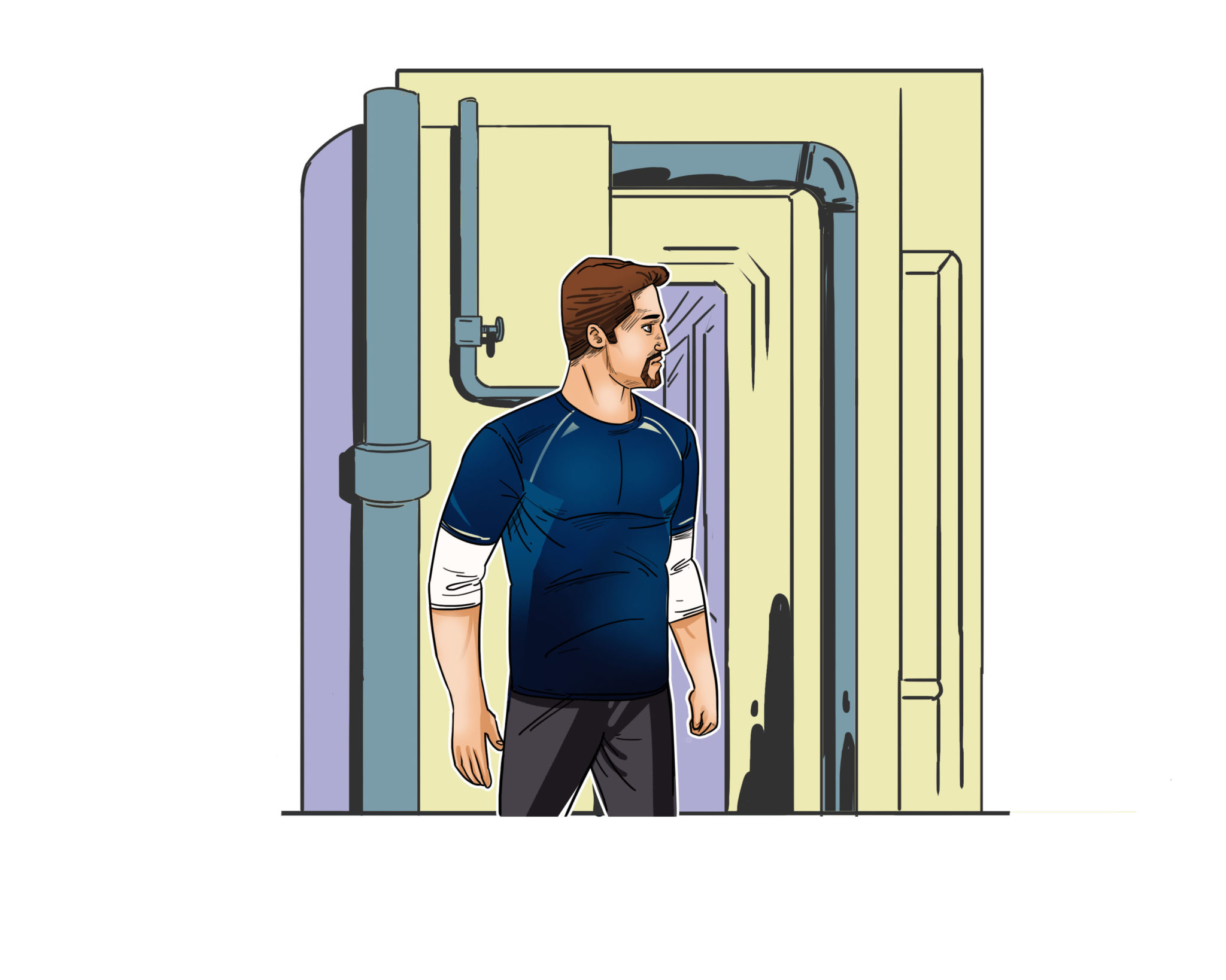 As the only near-casualty of the Avengers’ Civil War, War Machine is downed after one of Falcon’s weapons fries his suit. Falling before anyone can catch him, he is paralyzed from the waist down. While Stark is unable to repair his paralysis, he develops mechanical leg braces that help “Rhodey” walk again.