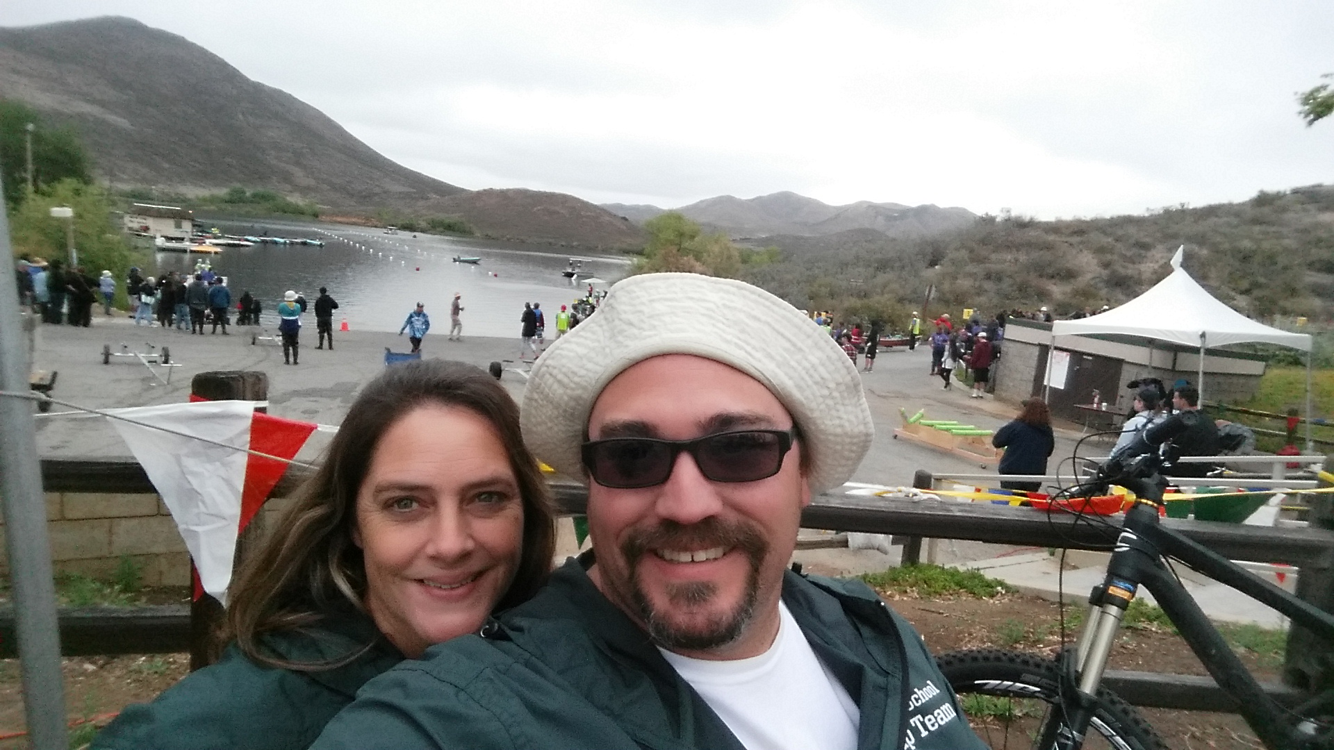 Kenneth and his wife Emily cheer on the Cabrillo High School Solar Cup team in their custom windbreakers.