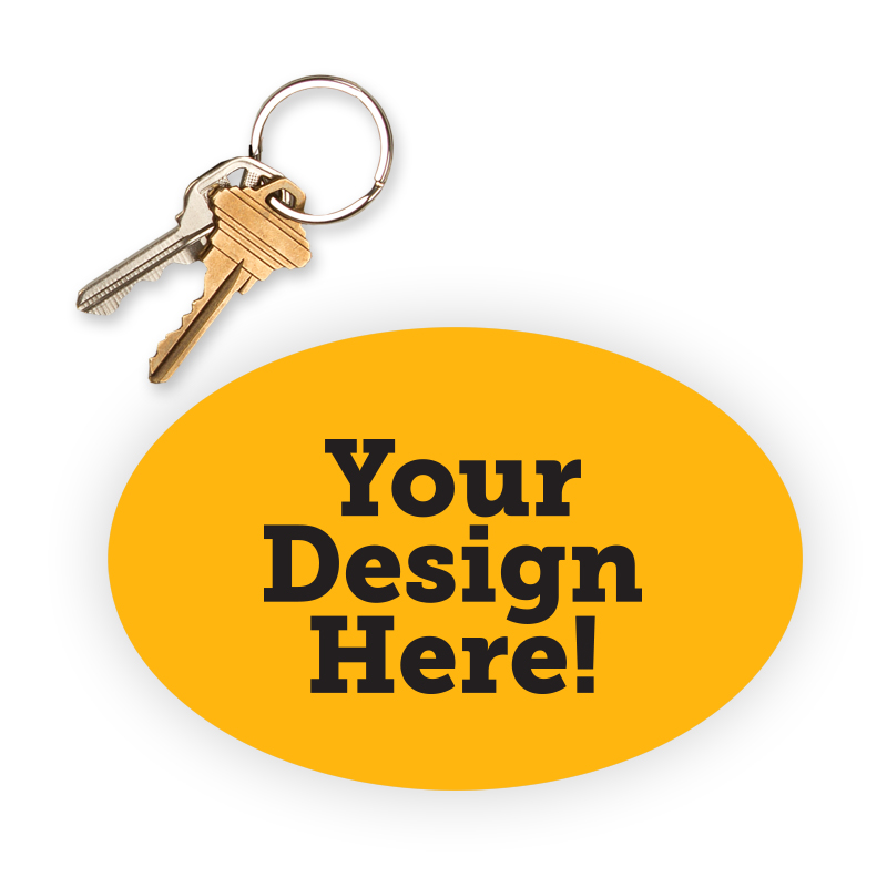 - 6″×4″ oval; screen-printed vinyl with split backing; weather-resistant; up to 12 ink colors including metallic gold and silver; minimum 250