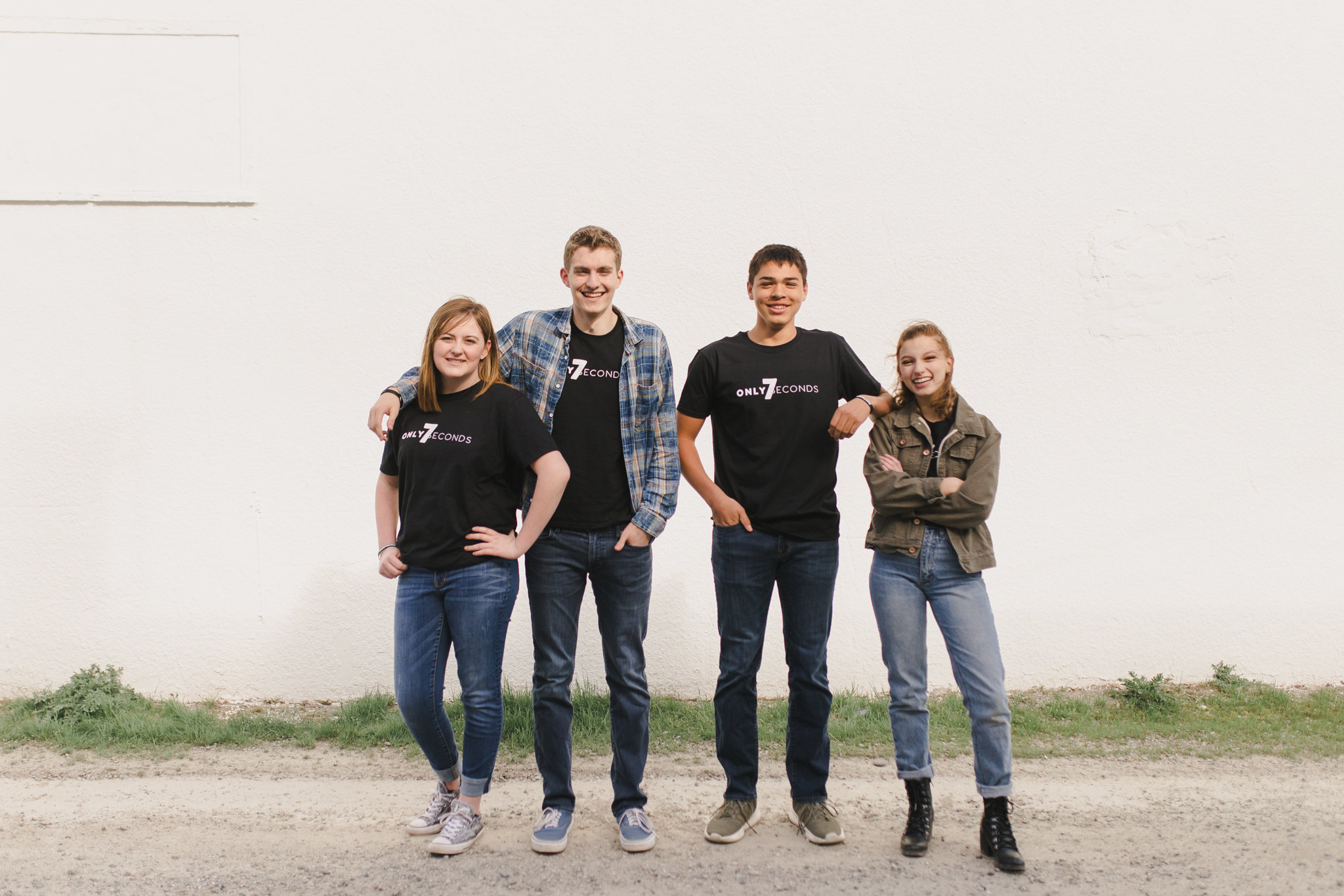 Mariyah Marie, Ethan Wall, Aiden Minnis, and Carina Lieberman show off their Only7Seconds custom t-shirts.