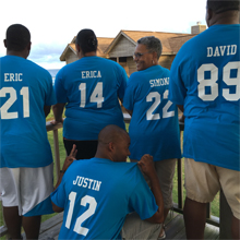 After Mrs. Spears’ husband was diagnosed with stage 4 colon cancer, she decided to live by the motto that “life is not promised” and began planning a family getaway to Galveston, Texas, that would allow her family members to relax together. To express their unity, they designed matching t-shirts with personalized names and numbers on the back. The t-shirts serve as a reminder of the harmonious time spent together.