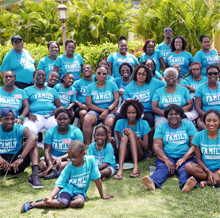 80 family members traveled from the United States, Canada, and the UK to Runaway Bay, Jamaica, for a large family reunion last summer. With a mixture of youth, ladies, and men’s tropical blue t-shirts, everyone in the group was comfortable throughout the reunion festivities.
