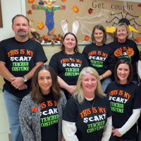 The teachers at Port Matilda Elementary in Pennsylvania host a Halloween parade for their students each year around the town. All teachers participated this year with ‘Scary Teacher Costume’ t-shirts. The shirts were such a hit around the school that the group is already planning a new order for Dr. Seuss week in the spring!