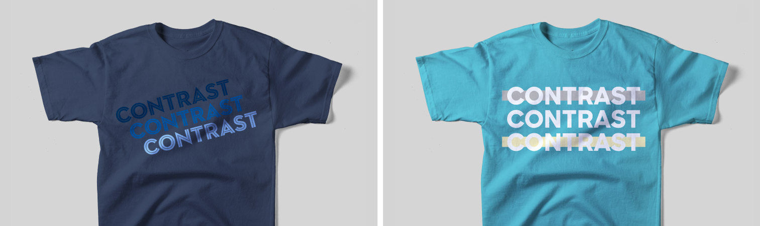 The shirt on the left displays ink-on-shirt contrast issues, while the shirt on the right shows why it is important to have good contrast with your ink colors.