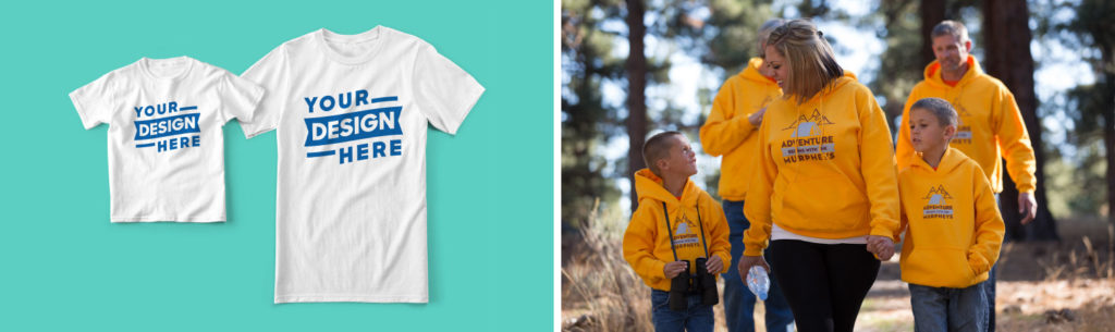 While our Design Lab features handy dandy print constraint guidelines to ensure that your design will print correctly unimpeded by seams, zippers, or stitching, it is a good idea to be aware of the sizes of your items and how your design will look printed on them. If you have a wide range of sizes, details that can print and stay visible on adult sizes may be lost or simplified for print on youth or smaller sizes. Consider sticking to large, bold, less complex art and text if you are printing on small sizes or items like hats, koozies, or waterbottles. If you are trying to use the same art across a range of products (like matching t-shirts, infant onesies, and personal can coolers), this is a good tip to keep in mind.