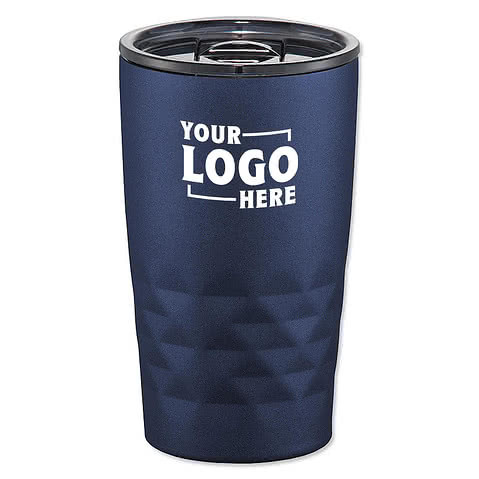 Choices for custom tumblers include stainless steel, BPA-free plastic, and travel mug-style options with lids.