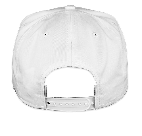 Shown on the New Era 9FIFTY Flat Bill Snapback Hat - Embroidered in White