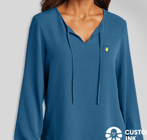 Shown on the Port Authority Women's Textured Crepe Blouse in Aegean Blue