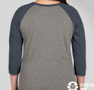Shown on the District Women's Tri-Blend Raglan T-shirt in Navy Frost / Grey Frost Try it on more styles and colors