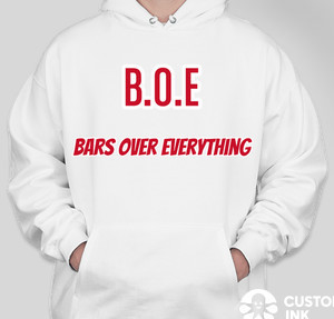 Shown on the Hanes Ultimate Cotton Heavyweight Pullover Hoodie in White Try it on more styles and colors