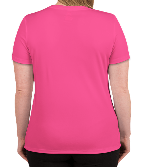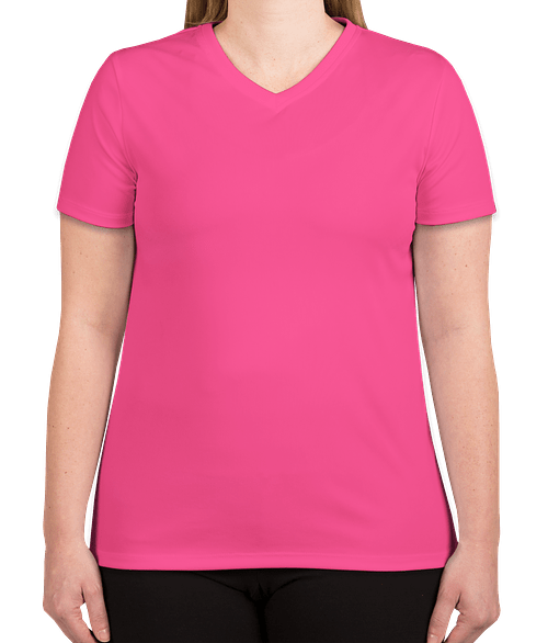 Shown on the Hanes Women's Cool Dri V-Neck Performance Shirt in Wow Pink Try it on more styles and colors