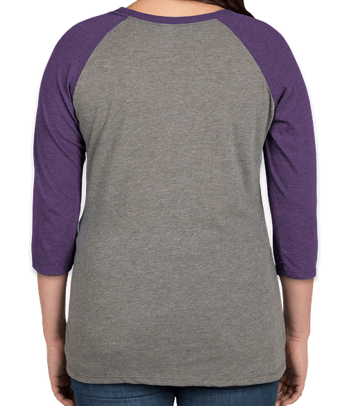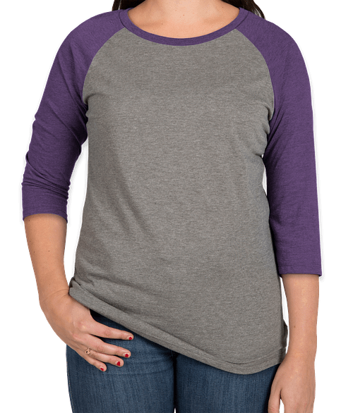Shown on the District Women's Tri-Blend Raglan T-shirt in Purple Frost / Grey Frost Try it on more styles and colors