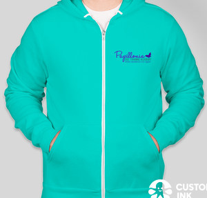 Shown on the Bella + Canvas Ultra Soft Zip Hoodie in Teal Try it on more styles and colors
