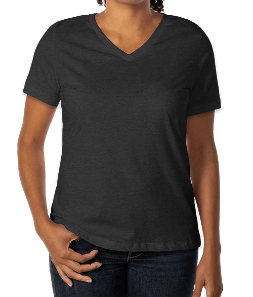 Shown on the Bella + Canvas Women's Jersey V-Neck T-shirt in Black Heather See it on all styles and colors