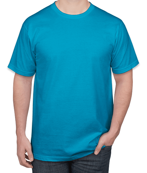 Shown on the Gildan Lightweight Jersey T-shirt in Caribbean Blue