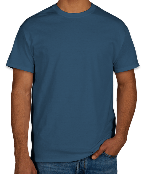 Shown on the Gildan 100% Cotton T-shirt in Indigo Blue Try it on more styles and colors
