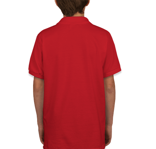 Shown on the Jerzees Youth Spotshield 50/50 Jersey Polo in True Red Try it on more styles and colors