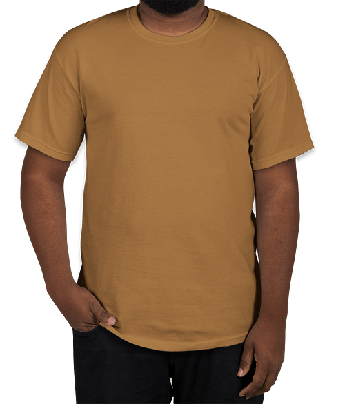 Shown on the Gildan Ultra Cotton T-shirt in Camel Try it on more styles and colors