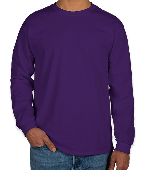 Shown on the Gildan Ultra Cotton Long Sleeve T-shirt in Purple Try it on more styles and colors
