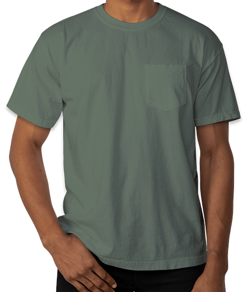 Shown on the Comfort Colors 100% Cotton Pocket T-shirt in Blue Spruce See it on all 5 styles