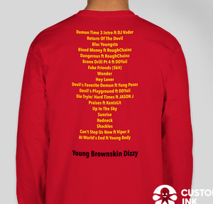 Shown on the Gildan Ultra Cotton Long Sleeve T-shirt in Red Try it on more styles and colors