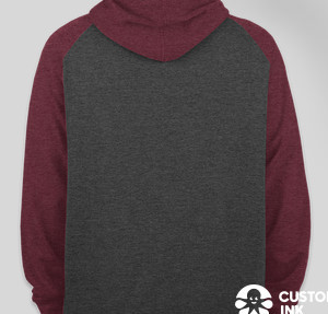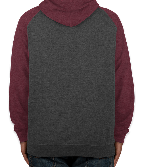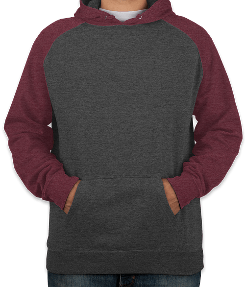 Shown on the Independent Trading Heather Raglan Pullover Hoodie in Charcoal Heather / Burgundy Heather See it on all styles and colors
