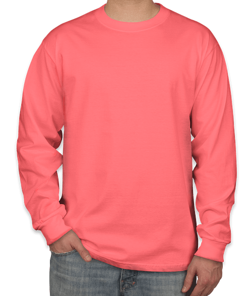 Shown on the Hanes Beefy-T Long Sleeve T-shirt in Charisma Coral Try it on more styles and colors