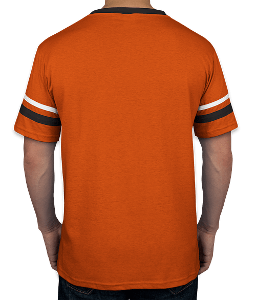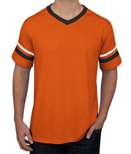 Shown on the Augusta Double Sleeve Stripe Jersey T-shirt in Orange / Black / White Try it on more styles and colors