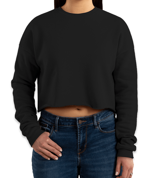 Shown on the Bella + Canvas Women's Drop Shoulder Cropped Crewneck Sweatshirt in Black Try it on more styles and colors
