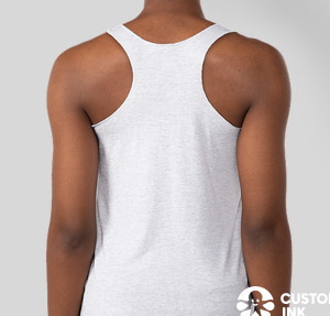 Shown on the Next Level Women's Tri-Blend Racerback Tank in Heather White