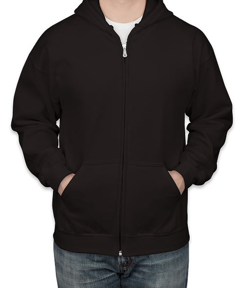 Shown on the Gildan Midweight 50/50 Zip Hoodie in Black Try it on more styles and colors