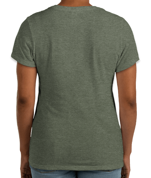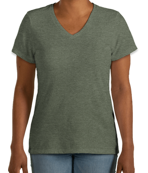Shown on the District Women's Perfect Blend V-Neck T-shirt in Heathered Olive Try it on more styles and colors